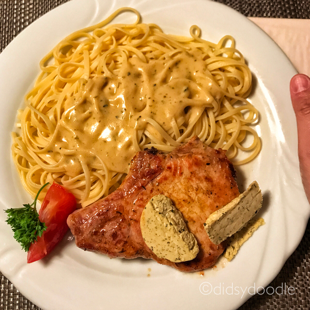 Sehr, sehr lecker gegessen (Kalbsleberli mit Rösti und Rindsfiletstreifen an Morchelsauce mit Pasta). Traumhaft - beste Empfehlung!